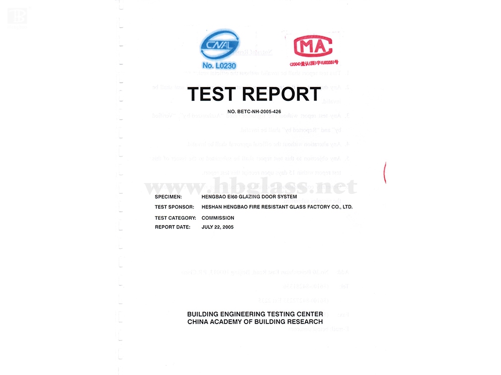 英標(biāo) 復(fù)合灌漿隔熱防火玻璃系統(tǒng)報(bào)告