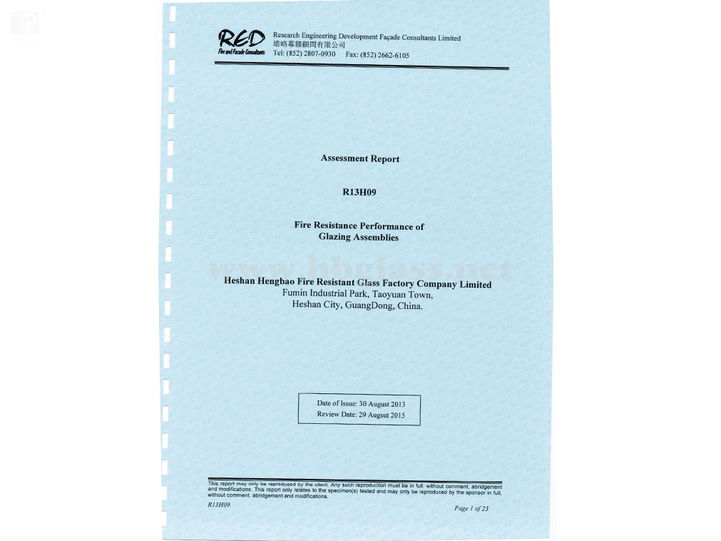 英標 復合灌漿隔熱防火玻璃系統(tǒng)報告